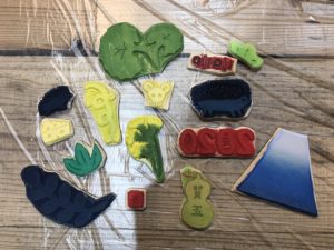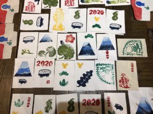 版木は2020、来年の干支のねずみ、チーズ、富士山などなど。。。