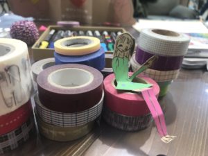 色塗りが終わるとハサミでカットして紐とマスキングテープを使ってガーランドを作ります。