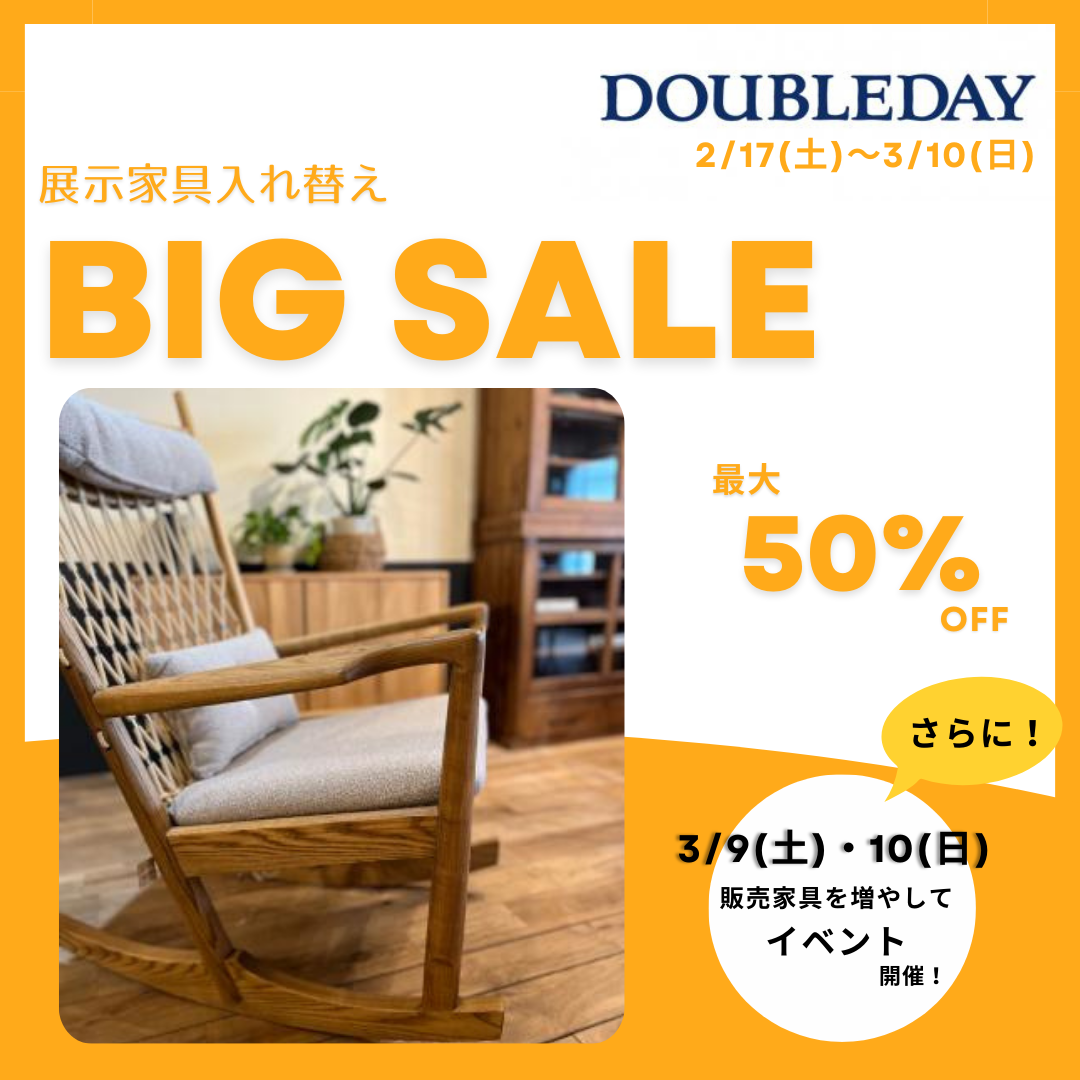 今回は、これまでショールームやコンセプトハウスで展示したDOUBLEDAYの人気家具がお買い得価格で購入可能です◎