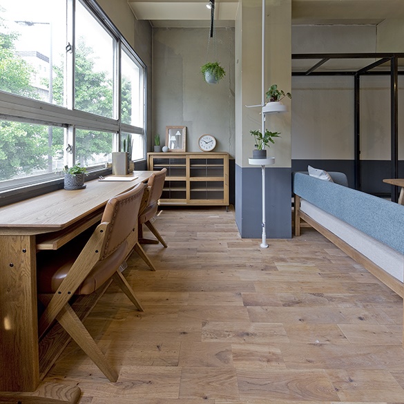 LDK ショールームにはDOUBLEDAY のアンティーク家具が並び、より“暮らし” をイメージしやすい空間に。